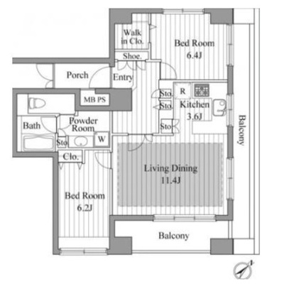 | 間取り | 1DK ~ 2LDK | 専有面積 | 32.60m2 ~ 66.32m2 |