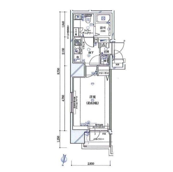 | 間取り/面積 | 1K / 26.06m2 | 方位 | 北 |