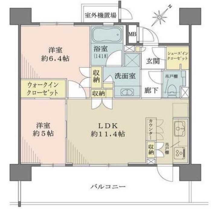 間取り | 2LDK | 専有面積 | 54.4m2 |