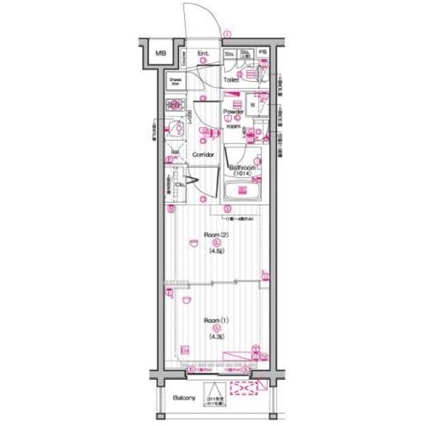 | 間取り/面積 | 2K / 25.98m2 | 方位 | 南東 |